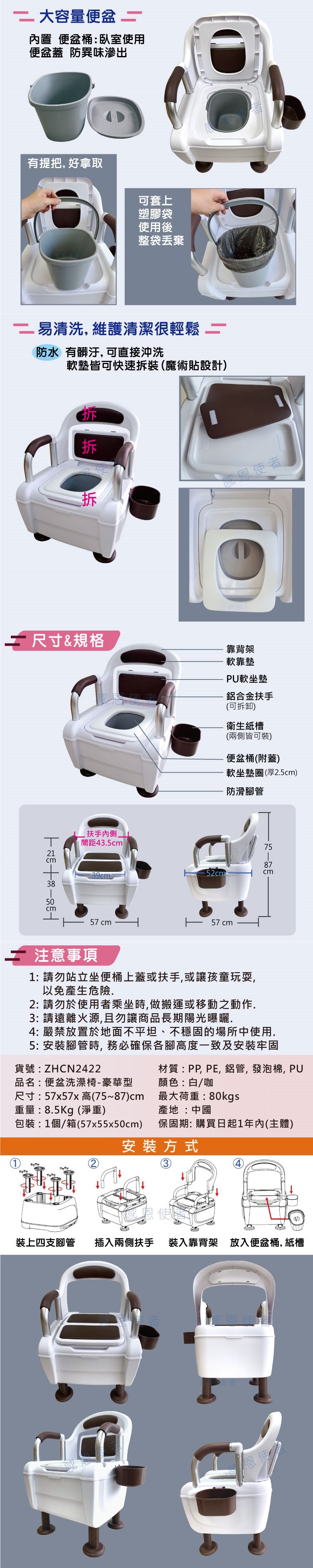 | ZHCN2422 便盆洗澡椅-豪華型 | 一台多用途 沙發感座椅 便盆椅 沐浴椅 | 點我下載 |