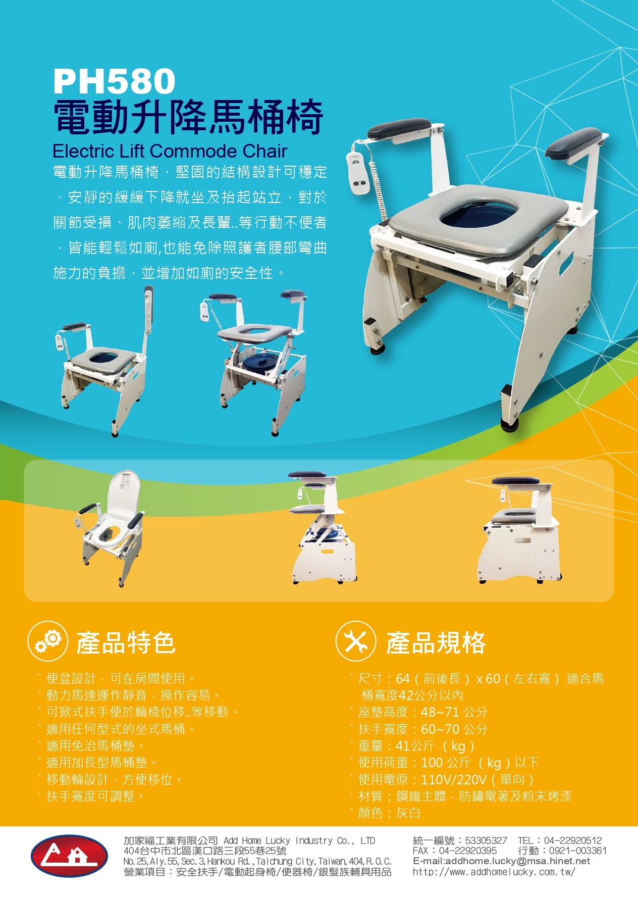 電動起身馬桶椅,堅固的結構設計可穩定、安靜的緩緩下降就坐及抬起站立,對於關節受損、肌肉萎縮及長輩..等行動不便者,皆能輕鬆如廁,也能免除照護者腰部彎曲施力的負擔,並增加如廁的安全性。
