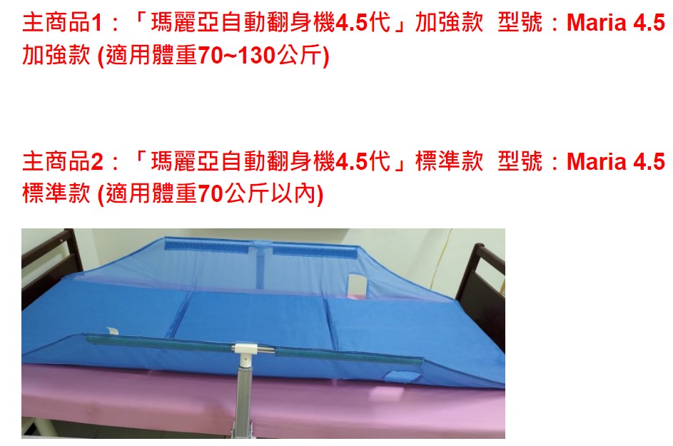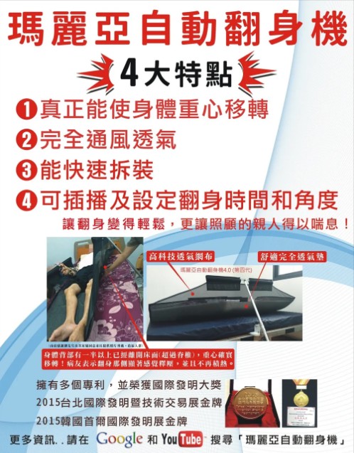 「瑪麗亞自動翻身機」基於實用和需求而研發,希望在這高齡化與少子化的時代中,能扮演分擔照顧者的勞力負擔的角色,造福更廣大的需求者。