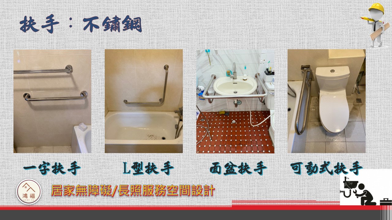 您好,本公司提供免費諮詢、丈量服務,全面採用台灣製造之扶手與日本專利防滑藥劑,除了保固一年,並有SGS認證及產品責任險200萬元,是您安心選擇的服務店家,專責專心只做無障礙的規劃與設計,本公司施工與丈量同仁均通過內政部建築物設置無障礙勘檢人員考試認證,除了給長輩安心,更能給未來住的安心,用的安心。