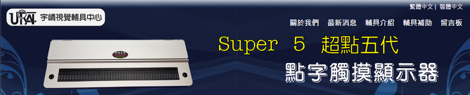 宇崝視覺輔具中心自2000年成立至今,秉持著不斷創新技術、追求卓越品質與服務廣大弱勢族群的經營宗旨,逐步奠定企業基石。宇崝目前除了擁有唯一國產的超點點字觸摸顯示器之外,更積極著手研製新一代的視障輔具,來造福國內外視障朋友;此外,在透過綿密的接觸之後,宇崝已經成功的把多元觸角伸向國際舞台,希望能夠結合國外優質廠商及技術團隊的寶貴經驗,把最新、最好的輔具設備介紹給國內的視障同胞。宇崝向來用心掌握「創意」、「技術」、「管理」、「全球行銷」、「國際化經營」等五大成功要素,期許在科技蓬勃發展的世界舞台上,展現成功的驕傲。
